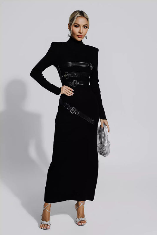 Zelda Black PU Maxi Dress
