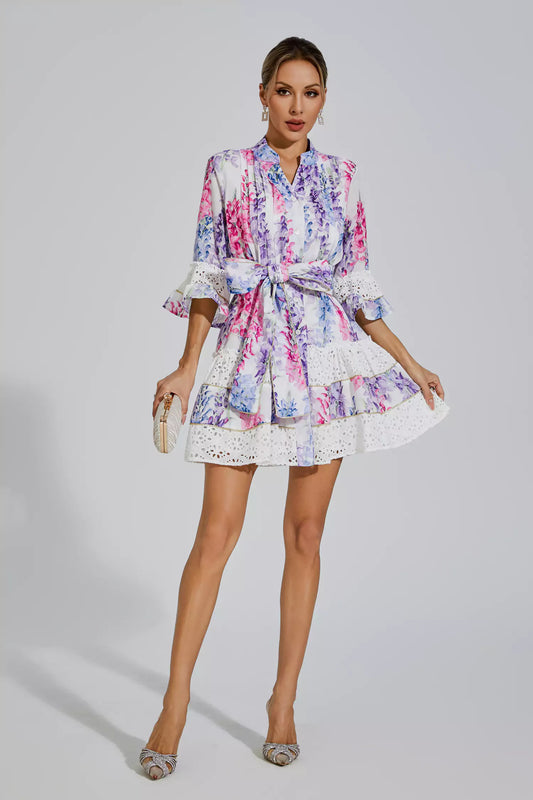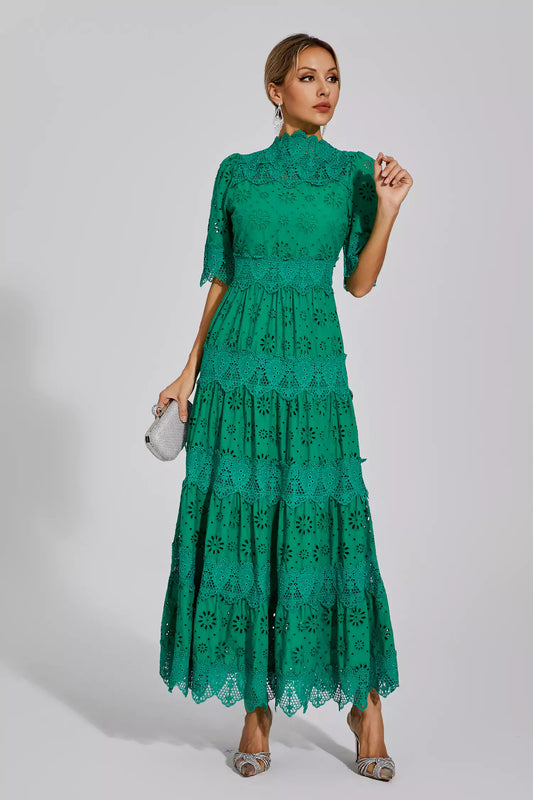 Esmeralda Blue Lace Floral Cutout Maxi Dress