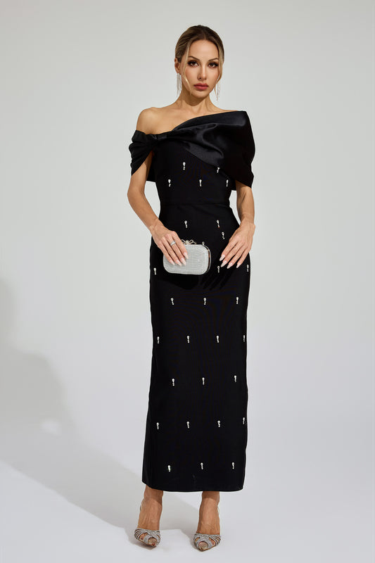 Hadlee Black Embellished Diamond Maxi Dress